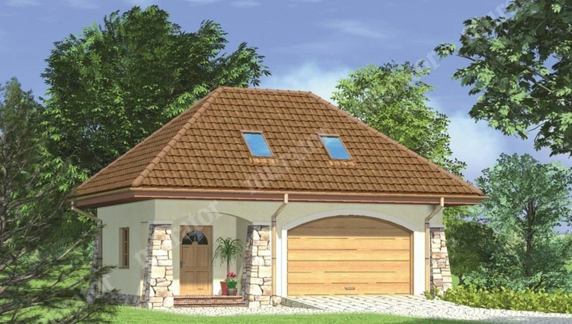 Этим проектом предусмотрено возведение по-настоящему роскошного гаража. Впрочем, назвать это здание просто гаражом язык не поворачивается. За счет наличия на мансарде полноценной жилой зоны гараж можно использовать как временное жилье, гостевой дом или же домик для охраны.