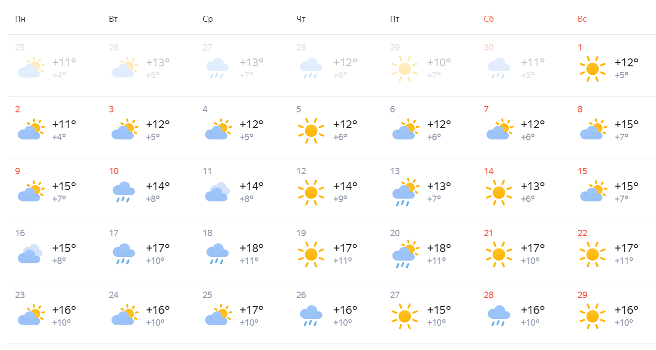 Опираясь на опыт прошлых лет, можно сказать, что в начале месяца может быть что угодно — от снега до жары. Но уже с середины мая всегда приходит тепло и даже жара. В 2021 году уже 12-го числа было +25 градусов.