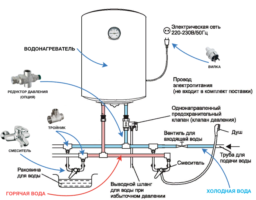При установке водонагревателя в квартире надо соблюдать разводку:
