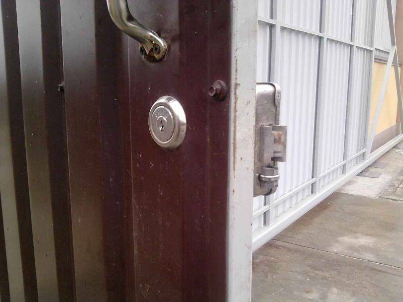 Крепят замок, при необходимости устанавливают цилиндровый механизм. Закрыв калитку, отмечают места куда будет входить засов на косяке двери. Вырезают пазы, проверяют, чтобы засовы при закрывании свободно заходили в отверстия