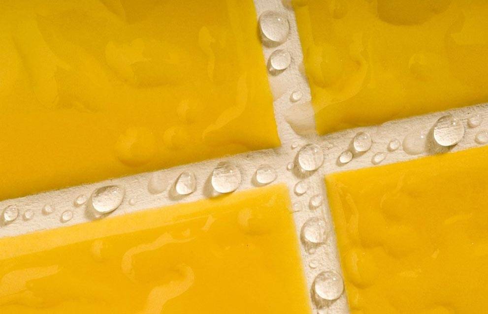 влагостойкость – ещё одно преимущество подобного состава. Где обычно используется плитка? Правильно – в местах с повышенной влажностью и загрязнённостью, которую также устраняют с помощью воды. Сразу после затвердевания эпоксидная затирка превращается в водонепроницаемую поверхность, с которой капли воды просто соскальзывают или «катаются шариками». Как известно, влага – один из постоянных «разрушителей» любых строительных материалов (даже бетона). Поэтому не подверженность её воздействию только продлевает срок службы затирочного шва;