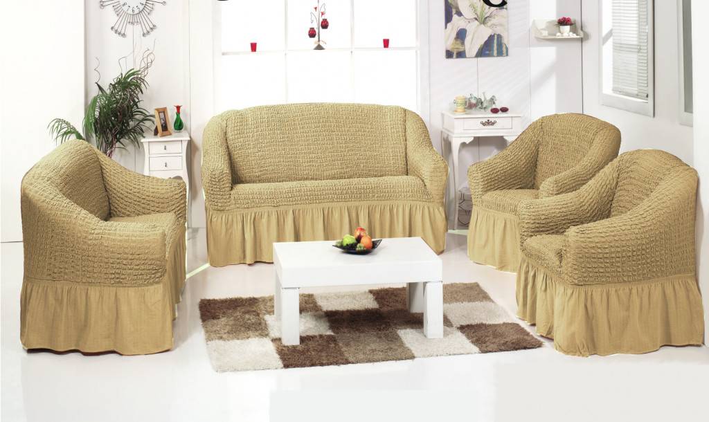 Разновидность еврочехлов напрямую зависит от модели мягкой мебели. Они могут комплектоваться аккуратной оборкой снизу (юбкой) или иметь ровный бортик на резинке. Существует несколько категорий накидок: