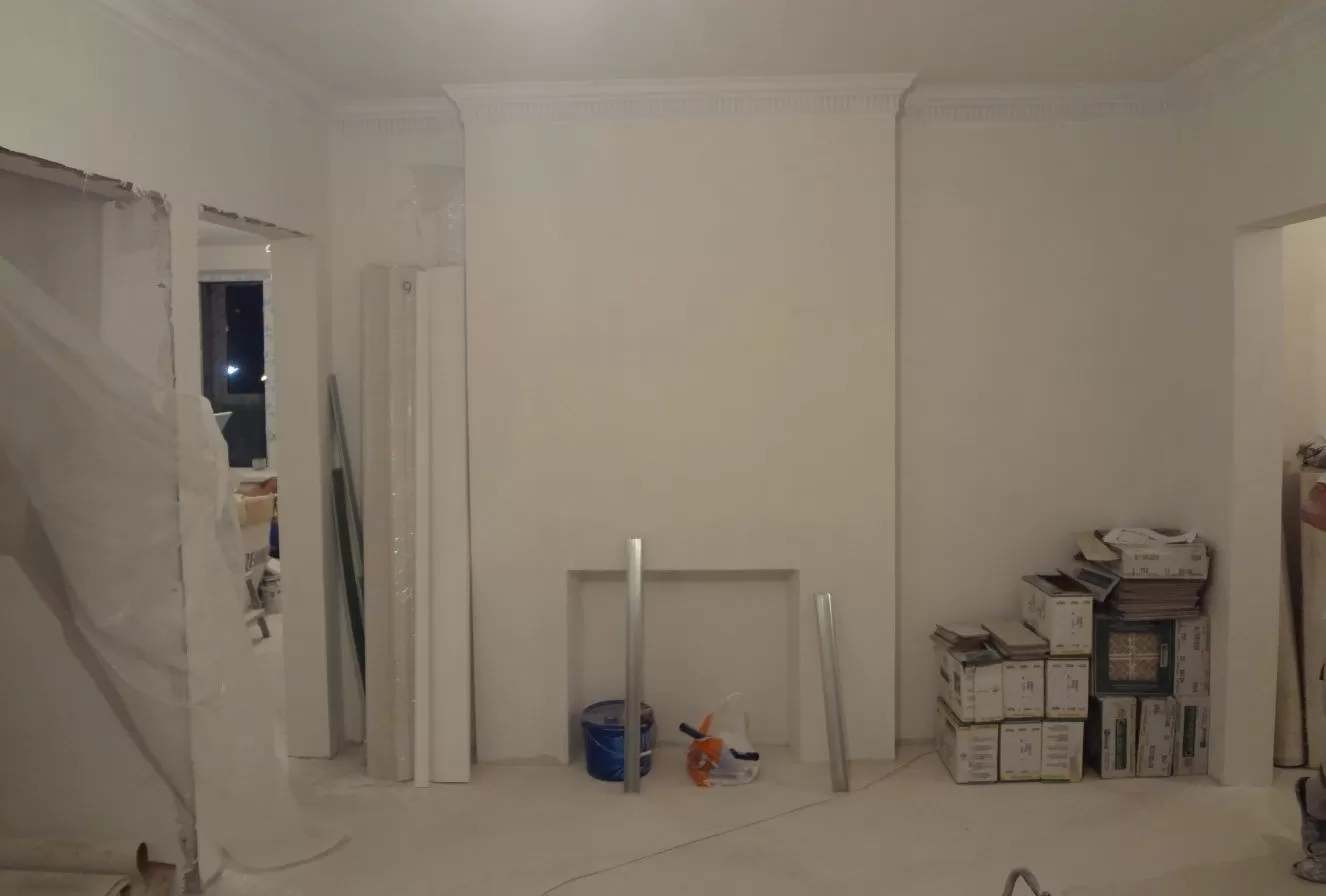 Дальнейшая шпаклевка происходит в несколько слоев до получения однородной поверхности. Фальш-камин из гипсокартона должен иметь окрашенную изнутри в черный цвет топку, предварительно эта зона должна быть обрамлена фанерой. Остается только выполнить шпаклевку ПВА.