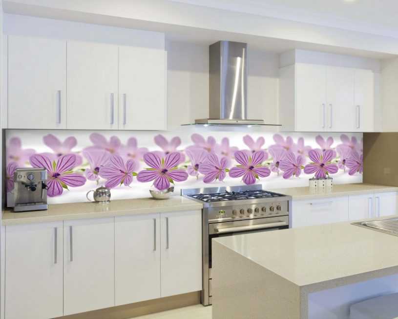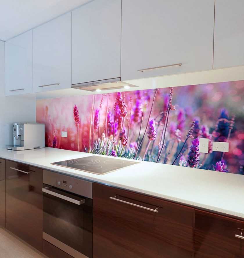 - В качестве рисунков и орнаментов для стеклянного кухонного фартука нет пределов фантазии. Легко замостить растительный принт, а можно и применить любое уникальное фото природы, сделанное собственноручно.