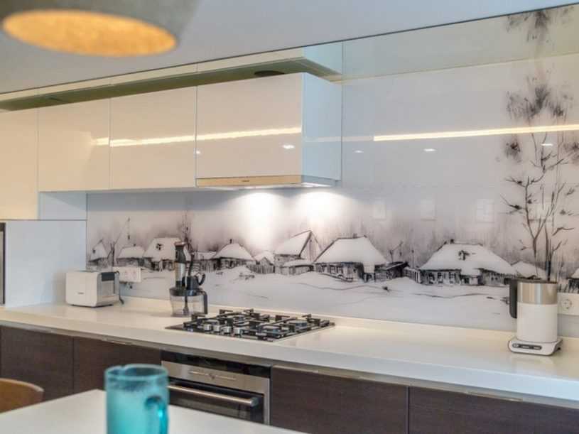 - Со временем стеклянный фартук не стареет, сохраняя свой первозданный вид.