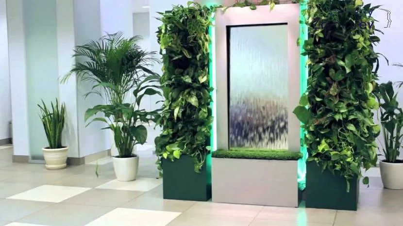 Водные сооружения со стеклом и струящейся по нему водой органично вписываются в ландшафтный дизайн, интерьер помещения. Вид стекающих по стеклу струй успокаивает, способствует релаксации. Водопад на даче со стеклом устанавливают возле зоны отдыха. Удачное решение для небольшого участка, вертикальная конструкция занимает немного места.