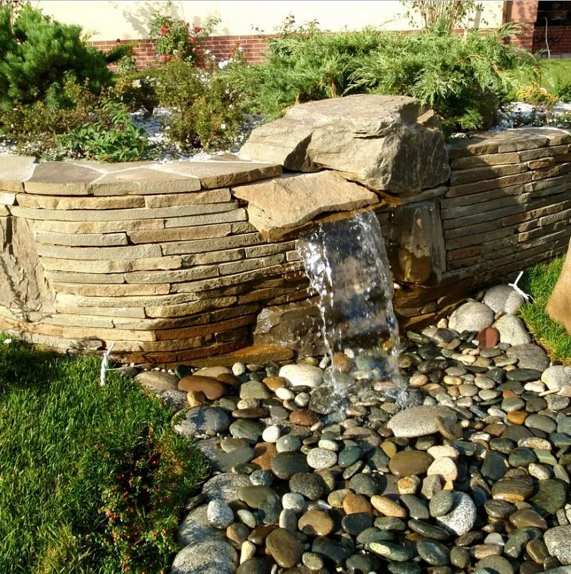 Преимущественно такой водопад строят для декоративных альпийских горок, в прудах или в помещении.