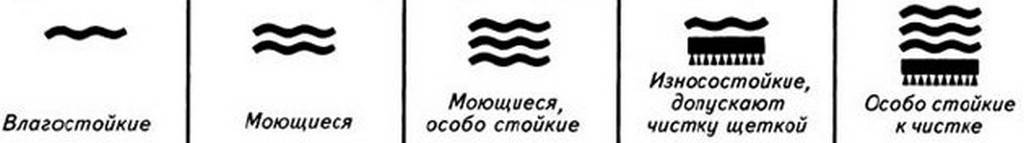 Одна волна означает, что обои можно протирать слегка влажной ветошью, но не тереть.