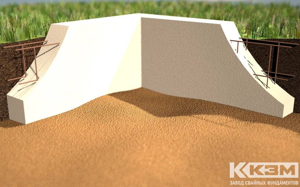 Опорные столбы заглубляются на глубину порядка полутора метров от верхнего уровня траншеи, что позволит обеспечить прочный каркас фундамента и обеспечить надежность всей последующей конструкции.