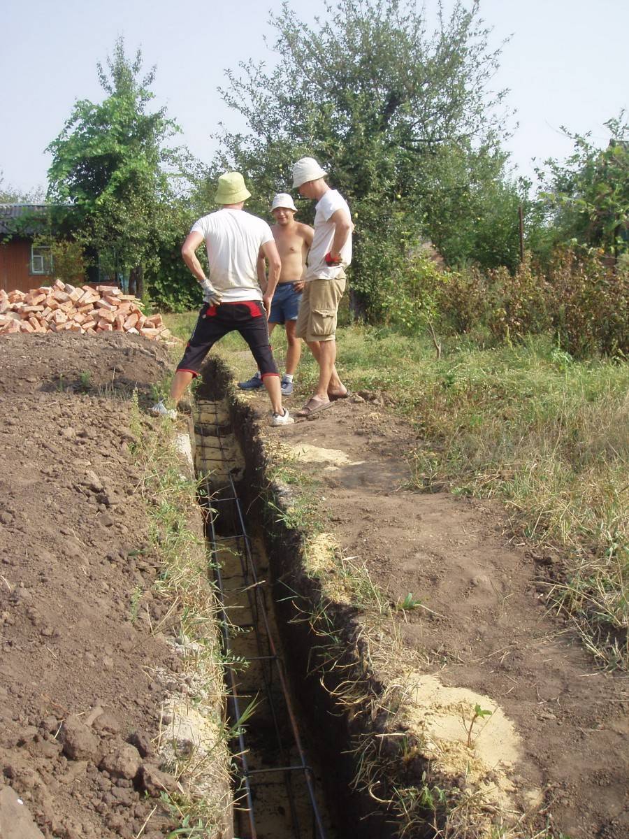 Яму (или канаву) под фундамент необходимо копать строго по имеющейся разметке. С этой целью возможно привлечение техники, такой как экскаватор или трактор, или же допускается воспользоваться обычной лопатой.