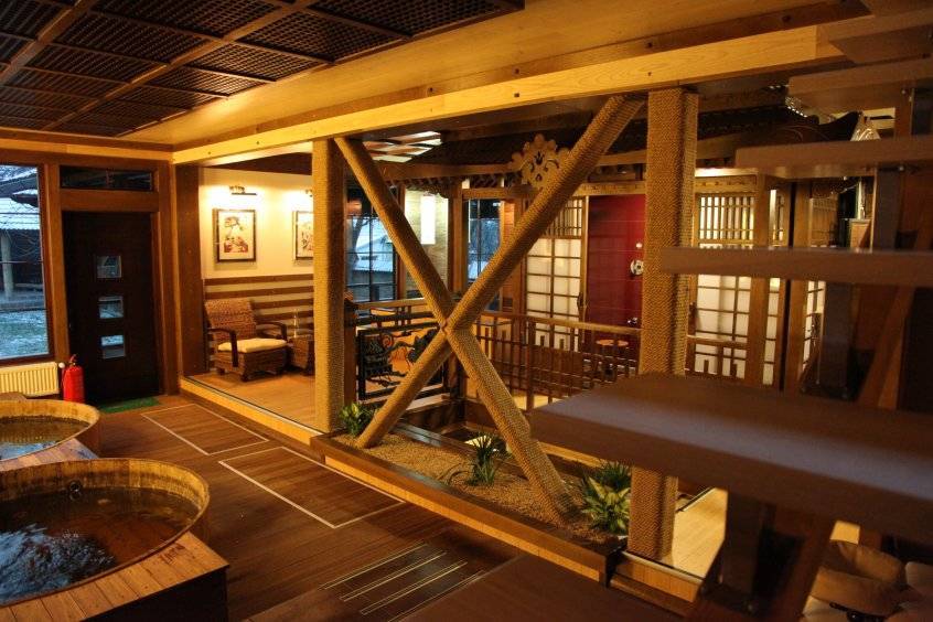 Процедуры в японской бане направлены на расслабление организма и получение душевного равновесия, поэтому необходимо организовать соответствующим образом комнату, предназначенную для отдыха. Рекомендуется свести к минимуму присутствие материалов не природного происхождения.