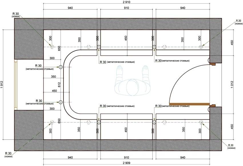 3-сторонняя может быть размещена в помещении шириной свыше 2 м. При такой планировке возникает ограничение и по длине зоны хранения. Она должна быть от 0,8 м.