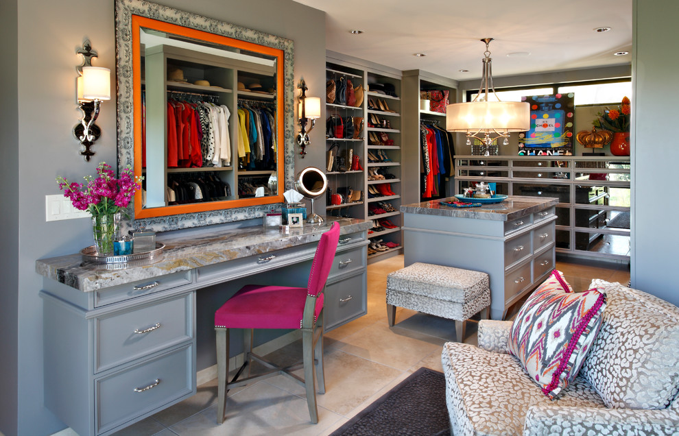 В гардеробной можно не только хранить вещи, в ней должно быть достаточно места чтобы переодеваться