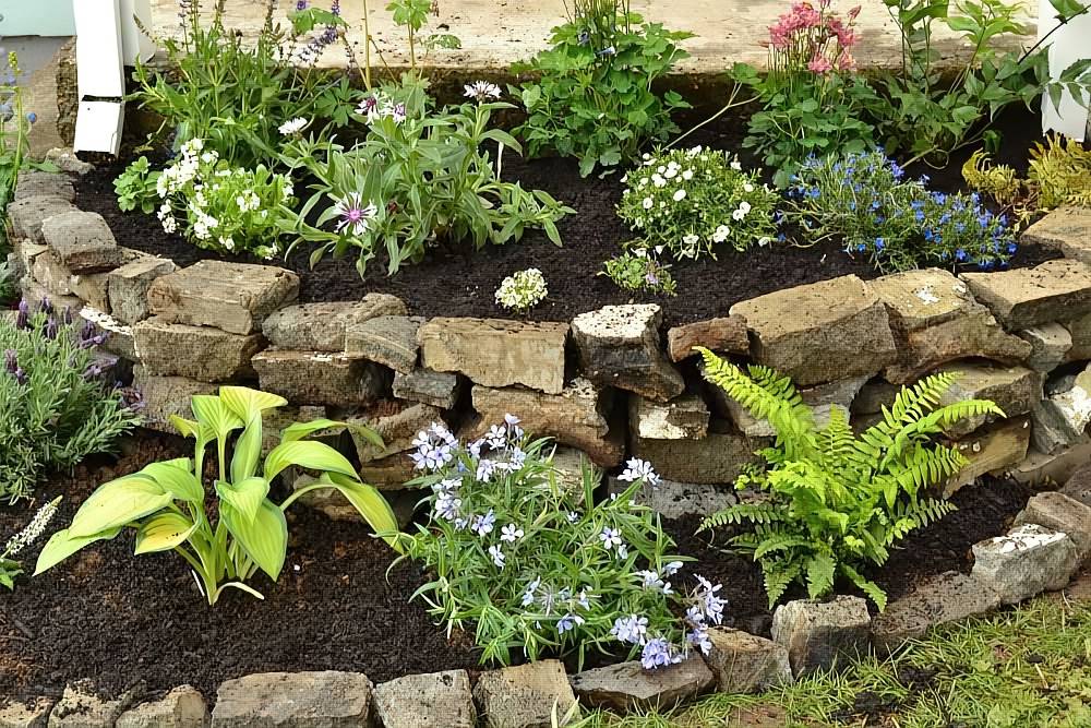 Когда двор просторный это просто отлично. Находите самое просматриваемое место и там разбиваете цветник. Что делать, если вся территория уже освоена, а цветы посадить хочется? Место найти можно всегда. Например, возле дома у вас площадка забетонирована или выложена плитами, камнем и т.д. У стены дома можно сделать отличную приподнятую или даже многоярусную цветочную клумбу своими руками. И не нужно разбивать покрытие. Прямо на нем выстраивается ограждение из кирпича или камня. Их желательно класть на раствор, а потом изнутри покрыть гидроизолирующей пропиткой (битумной мастикой), чтобы при поливе вода не текла на дорожку. Потом можно засыпать грунт и садить цветы.