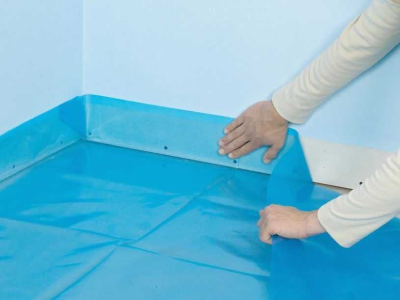 - Участки соединений пола и стен герметизируют водонепроницаемой лентой.