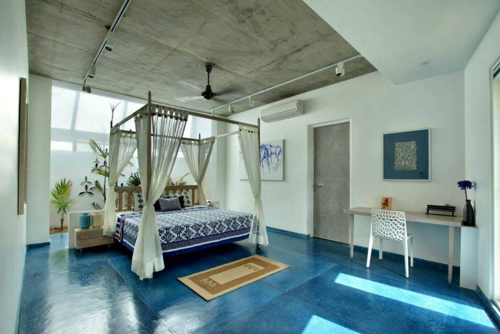 Голубой цвет в спальне: идеи декора