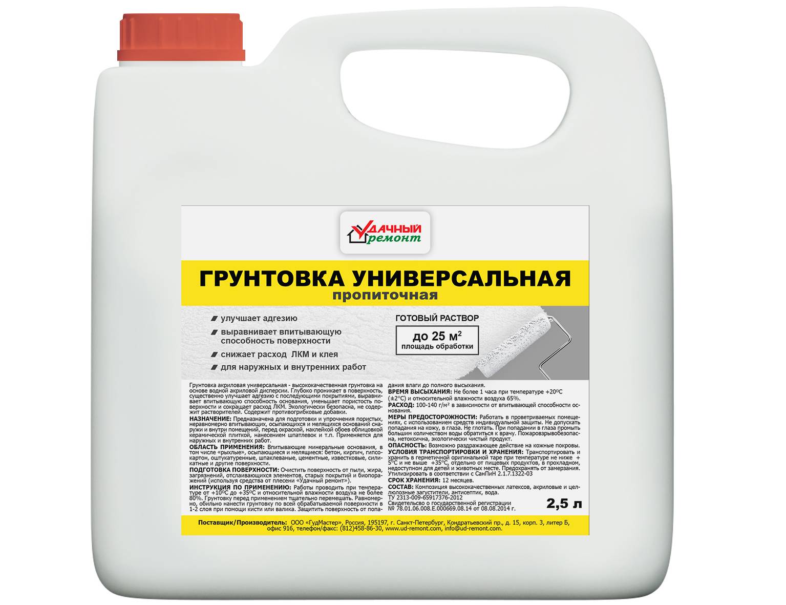 Грунт, наносимый под водоэмульсионную краску, снижает гигроскопичность основания, что приводит к более равномерному распределению краски на поверхности, усилению прочности покрытия, увеличению срока износа.
