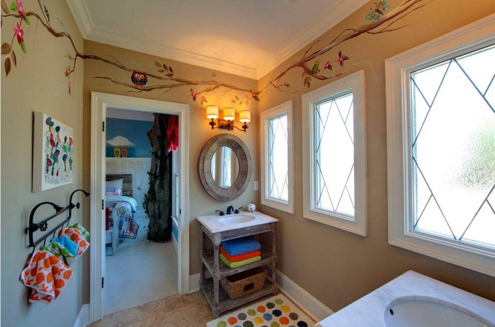 При помощи ручной росписи можно исправить, замаскировать или обыграть некоторые недостатки комнаты. Например, нарисовать отсутствующее окно, предметы мебели или аксессуары, закрасить пятно на стене и прочее.