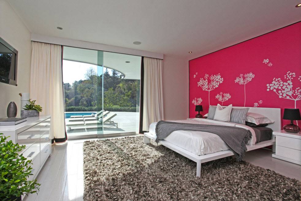 Чаще всего для спален выбирается романтический стиль рисунка на стенах. Большинство из нас стараются создать в комнате максимально расслабляющую атмосферу для сна и отдыха. Поэтому нежные оттенки в изображении цветочных мотивов или светлых пейзажей становятся центральной темой в интерьере спальни.
