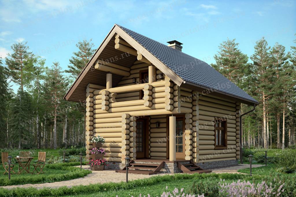 Проект двухэтажной деревянной бани с мансардой, балконом и террасой