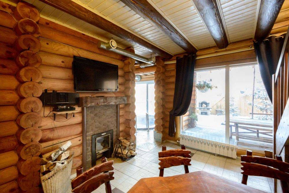 Более современным будет что-то вроде гибрида русской бани с альпийским домиком. Это дает возможность осовременить интерьер, в который уже нормально впишутся и шкуры на полу, и мягкие диваны в комнате отдыха, и не зашитые в потолок балки. Представить будет легче, если вместо «альпийского» вообразить «охотничий домик».
