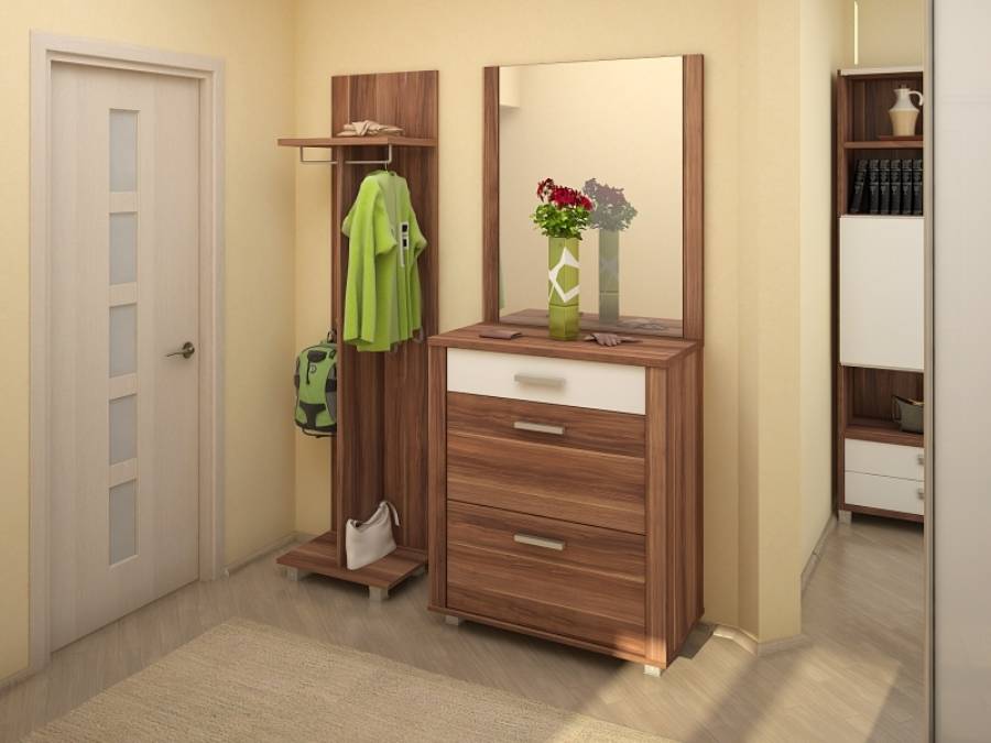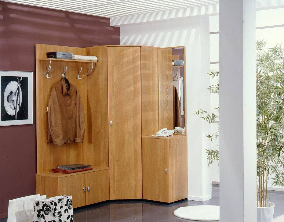 Шкаф для хранения одежды. Для маленьких прихожих подойдут три типа шкафов: угловой, шкаф-купе или узкий. Главным условием является ширина шкафа, которая должна быть не более 40 сантиметров. При узкой конфигурации коридора вместо шкафа альтернативой выступает вешалка подвесная или напольная.