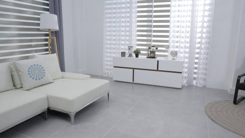 Напольное покрытие в интерьере исключительно однотонное, без ковров, занимающих полкомнаты (при этом небольшие однотонные, небольшие коврики допускаются). В зависимости от функционального назначения помещения укладывается деревянный, каменный или плиточный пол – светлый или темный. Помните, что в небольших пространствах лучше отдать предпочтение светлым цветам.