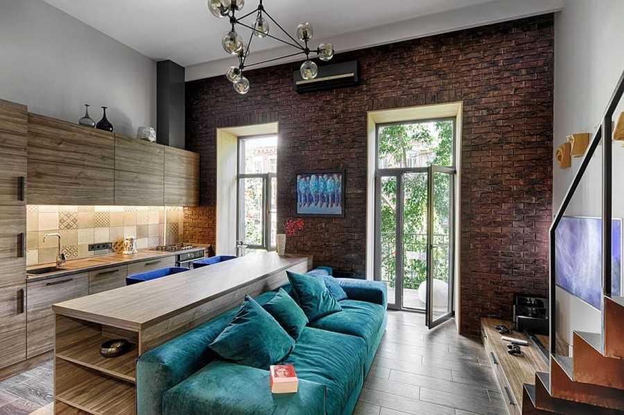 Стена из необработанного кирпича смотрится очень оригинально и современно
