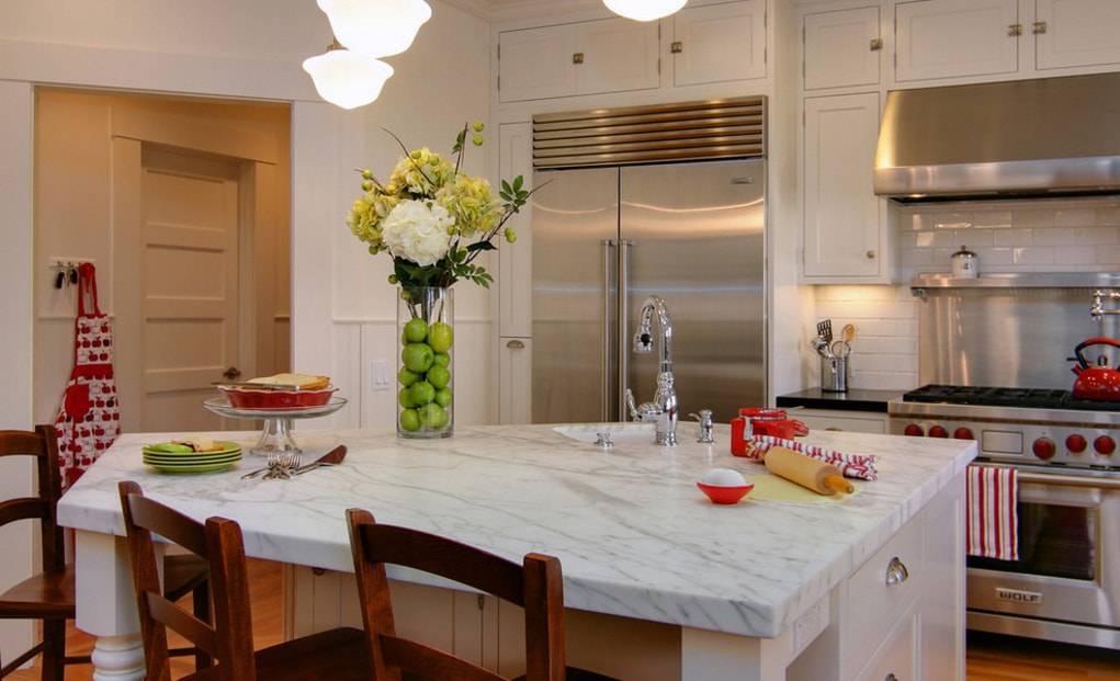 Кухня — еще одна комната, в которой крайне редко можно увидеть натуральные букеты. Причиной тому служат постоянные испарения от готовки пищи и в целом сухой воздух. В этом помещении семья проводит много времени.
