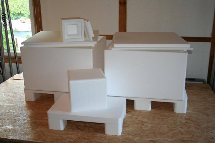 Пенопласт обладает очень низким весом, что особенно актуально при изготовлении объёмных фигур. Кроме того, к преимуществам использования материала данного типа следует отнести: