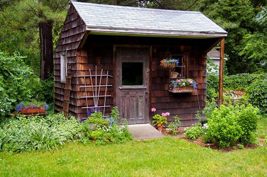 - если в хозпостройке будет храниться только садовый инвентарь и инструменты, размера 1,5 х 1,5 м. будет вполне достаточно. Для хранения используют крючки и полочки на стенах.
