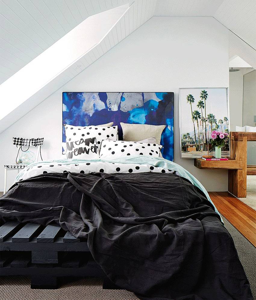 А если оформить стену над кроватью с помощью грифельной доски, выйдет полезное изголовье, на котором можно оставлять записи.