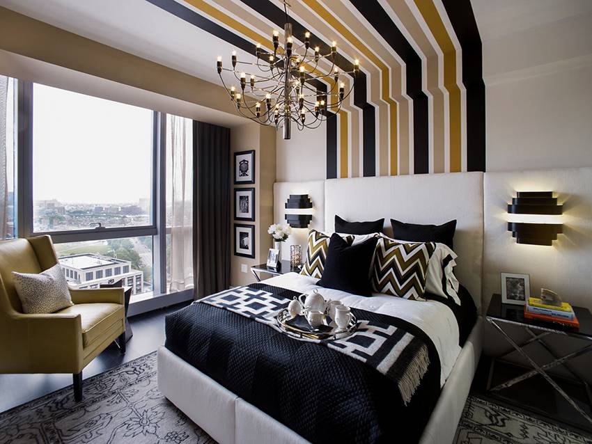 Также для обозначения изголовья кровати могут использоваться следующие интересные дизайнерские приемы: