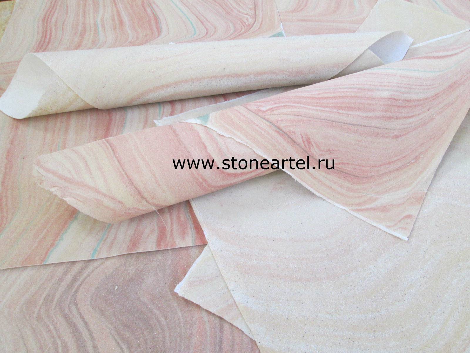 В результате вышеописанных действий на тканном материале остается естественная природная текстура, формировавшаяся много тысячелетий. Причем если в составе такого пласта присутствует глина, то гибкий камень будет иметь коричневые и красные прожилины, тогда как наличие железосодержащих руд обеспечит материал бурыми оттенками, а песчаник – сформирует яркие желтые разводы. Иными словами в результате среза каменной породы получится уникальная текстура, характеризующаяся великолепными эстетическими и эксплуатационными характеристиками.