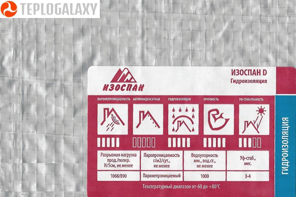 Эта разновидность паро- гидроизоляционного изоспана обладает повышенной прочностью, так как изготавливается на основе тканого из полипропилена полотна. Высокие прочностные характеристики изоспана-D на разрыв позволяют использовать этот материал для изоляции строительных конструкций от воздействия атмосферной влаги снаружи, при этом на изоляционное покрытие допустимо воздействие даже статической снеговой нагрузки.