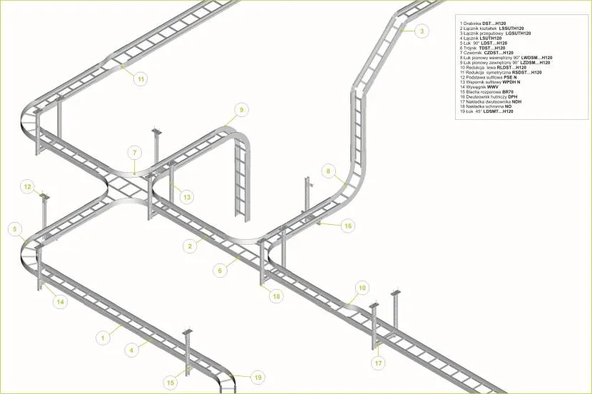 Пример схемы расположения кабельных лотков лестничного типа Источник baks.com.pl