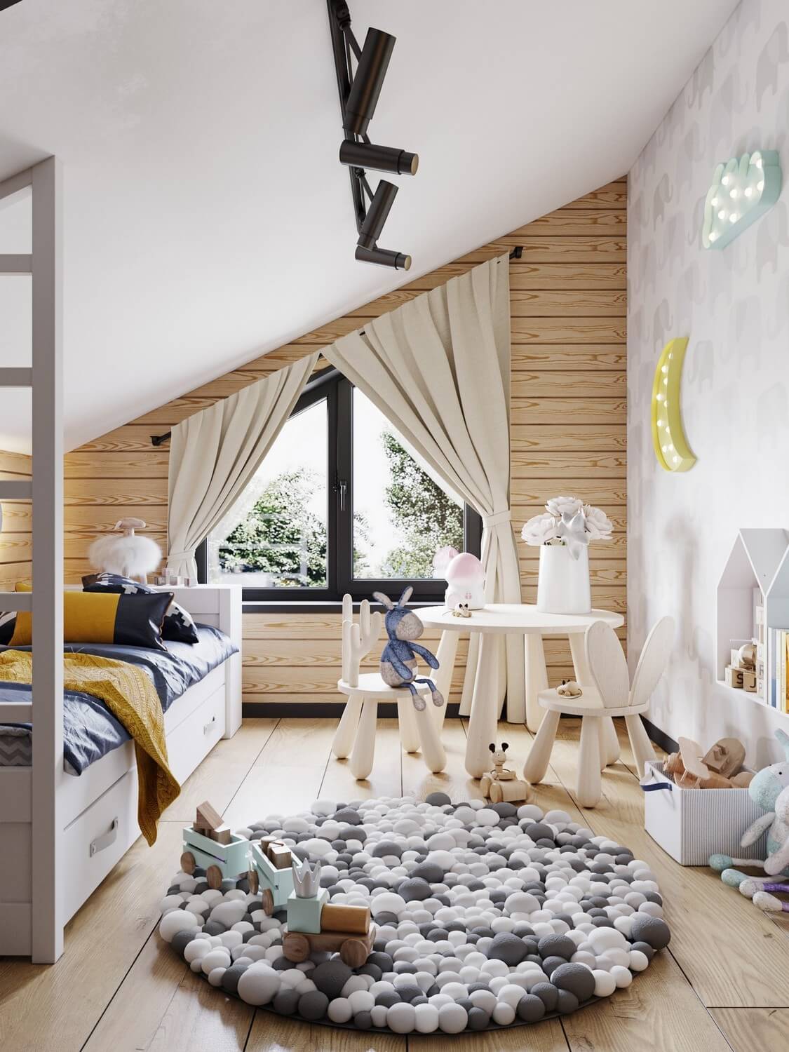 Важно, чтобы шторы были яркими и не однотонными. Как вариант, шторы могут быть в вертикальную полоску
