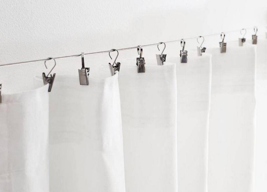 Повесить шторы можно на обычные крючки для одежды или липучку на планке.