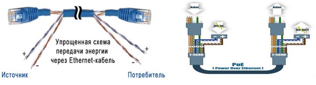 Такая схема позволит помимо информационного сигнала передавать питающее напряжение на коммутатор, роутер или любое другое устройство. Это избавляет от необходимости покупать отдельный шнур питания. В распиновке разъема rj-45 синий и коричневый провода используются для подачи электричества. Вы спросите меня, где это нам полезно? Ответ: при установке видеонаблюдения подавать электричество на коммутатор. Многие из них рассчитаны на питание от разъема RJ-45. И т.п.