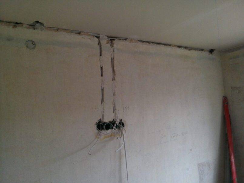 - От распределительной коробки или иного элемента сети, от которого следует подключить монтируемое устройство, прокладывается кабель;