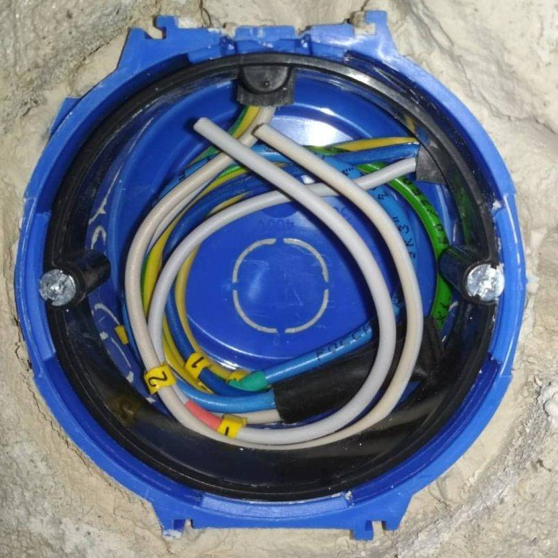 - Расключение выполняется в соответствии с цветами жил кабели и требуемыми контактами: голубая жила – к контакту заземления, жилы прочих цветов – к фазным контактам;