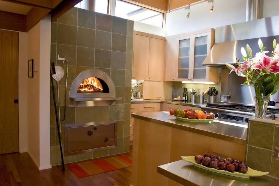 Если предполагается регулярно готовить пищу, помимо обязательного горнила, в конструкции предусматривают варочную поверхность и жарочный шкаф небольшого размера. Для использования этих элементов предусматривают отдельные топки, чтобы не греть дом в летнее время.
