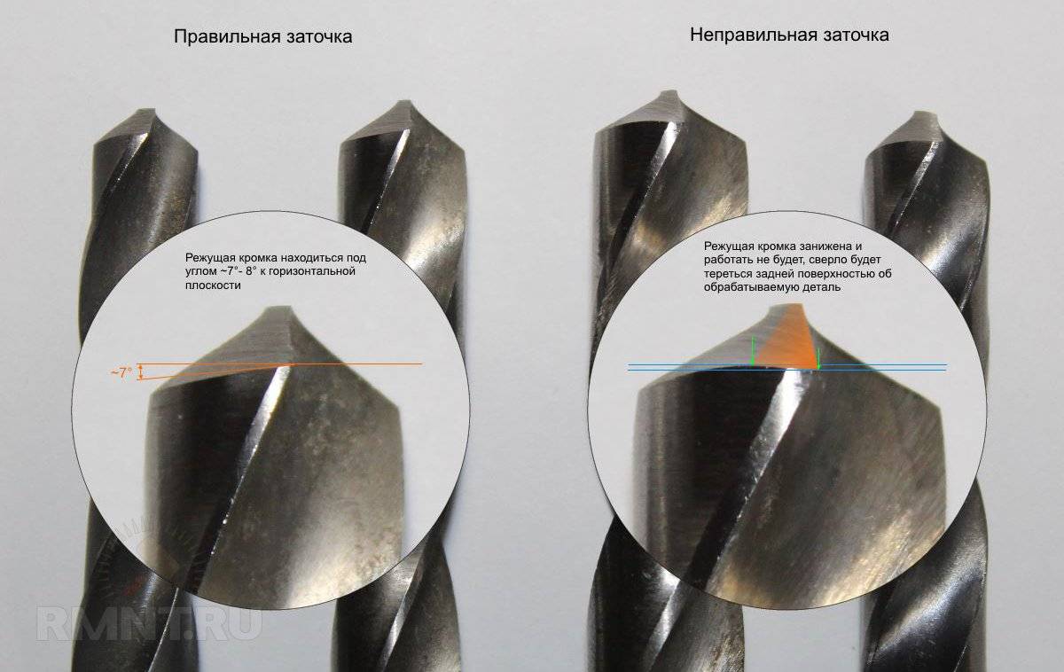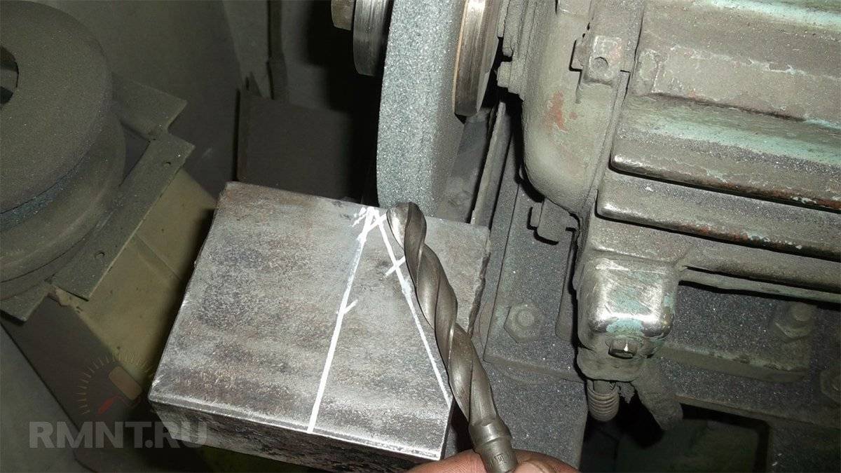Выше мы рассмотрели базовую разновидность свёрл. Чтобы понять, как формируются углы при заточке, нужно лишь немного знаний и практики. Точить свёрла лучше всего на шлифовальном станке с подручником, в худшем случае можно воспользоваться универсальной заточной машинкой. На УШМ свёрла точить нельзя: во-первых, это противоречит технике безопасности при работе с этим электроинструментом, а во-вторых, из-за большой скорости вращения металл сильно перегревается и отпускается, становясь мягким.
