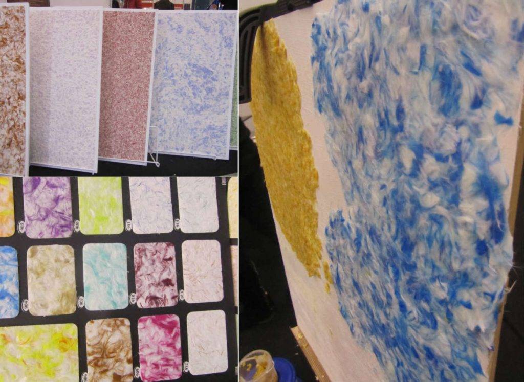 Основной недостаток бумажных наполнителей – не самый презентабельный внешний вид готового покрытия, вызывающий ассоциации с папье-маше. Тем, кто хочет, чтобы самодельные жидкие обои выглядели не столь дешево, стоит рассмотреть вариант с тканевыми волокнами. В качестве наполнителя с равным успехом можно использовать:
