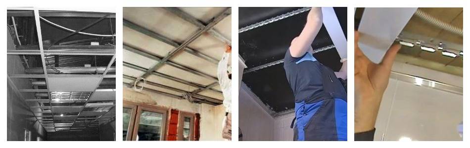 Теперь можно заменить повреждённые панели или коммуникации и произвести монтаж потолка.