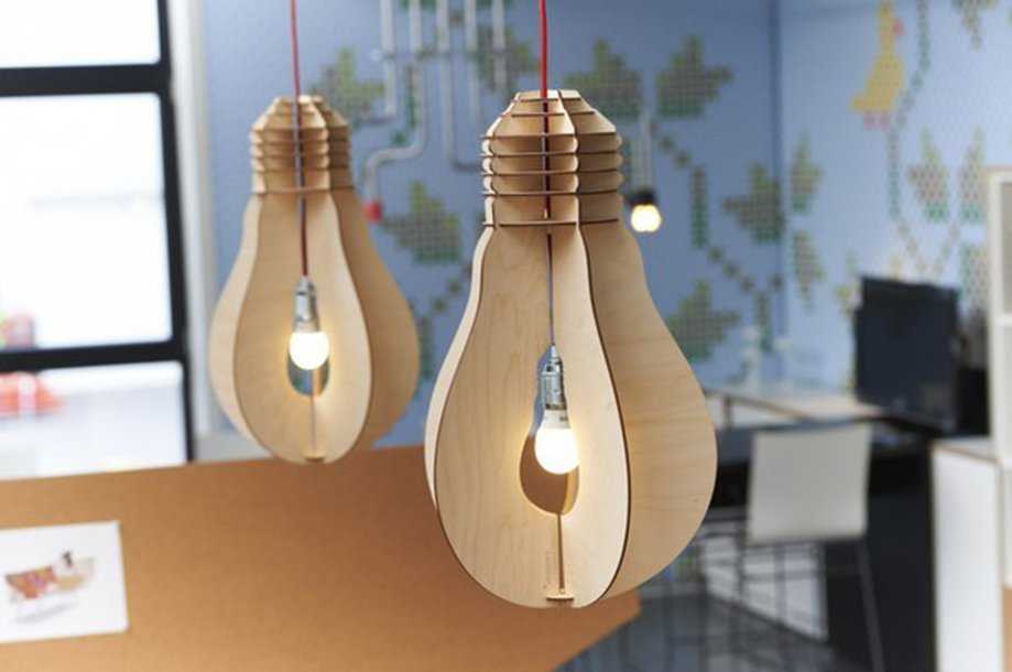 Наконец, изготавливая светильник из фанеры, мастер ограничен только своим воображением. Он может создавать любые причудливые формы, вырезать ажурную сетку, делать абажур в виде человеческой фигуры. Светильник можно сделать любой: потолочную люстру, торшер, бра, ночник, фонарик.