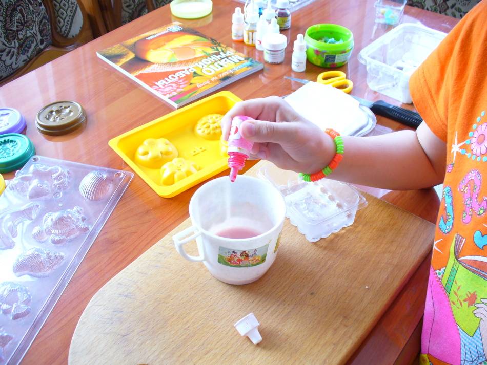 - Краситель перед добавлением в мыло лучше смешать с базовым маслом, тогда удастся избежать образования комочков.