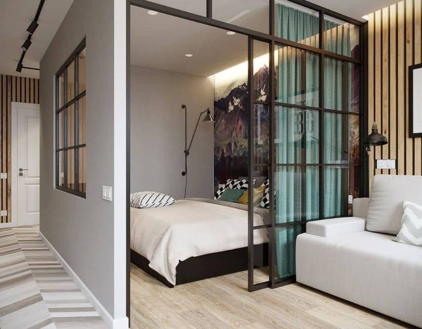 Чтобы из однокомнатной квартиры сделать двухкомнатную, можно воспользоваться инструментами зонирования: