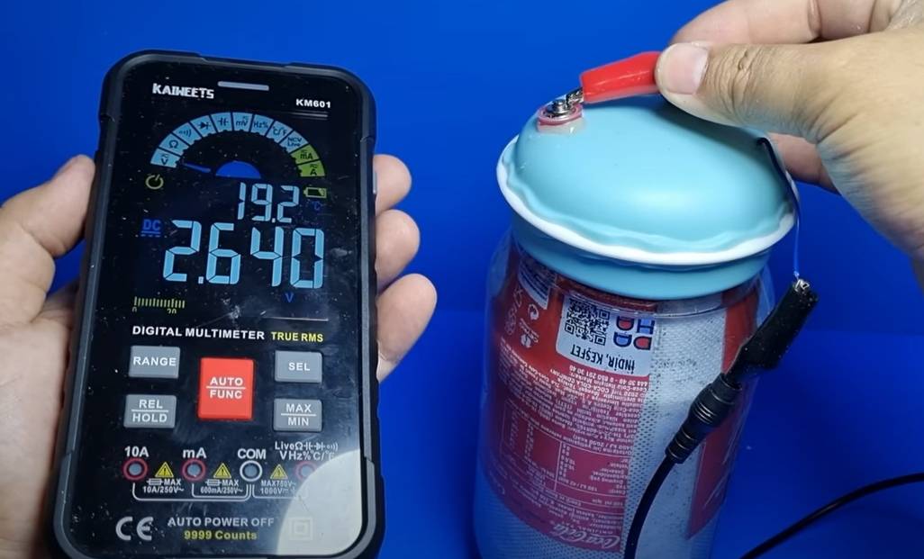 В ходе работы получается водно-солевая батарея. Чтобы заправить ее, в воде растворяют несколько ложек пищевой соли. Перемешивать необходимо до полного растворения вещества в жидкости. Полученную соленую жидкость заливают в емкость и плотно закрывают крышку. Силы тока, который на данном этапе выдает батарея, должно хватить для запуска преобразователя. Мультиметр может показать значение, равное примерно 2,5 В.