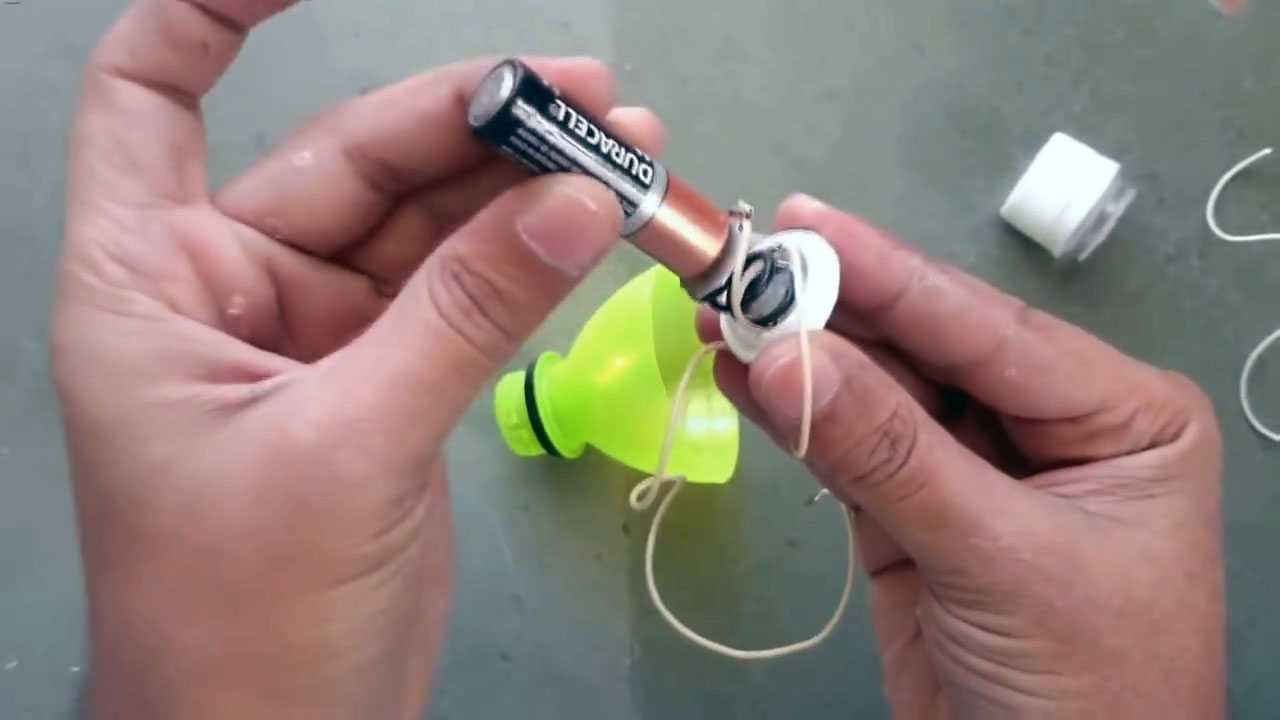Через горлышко внутрь надо завести провод и осторожно закрепить его